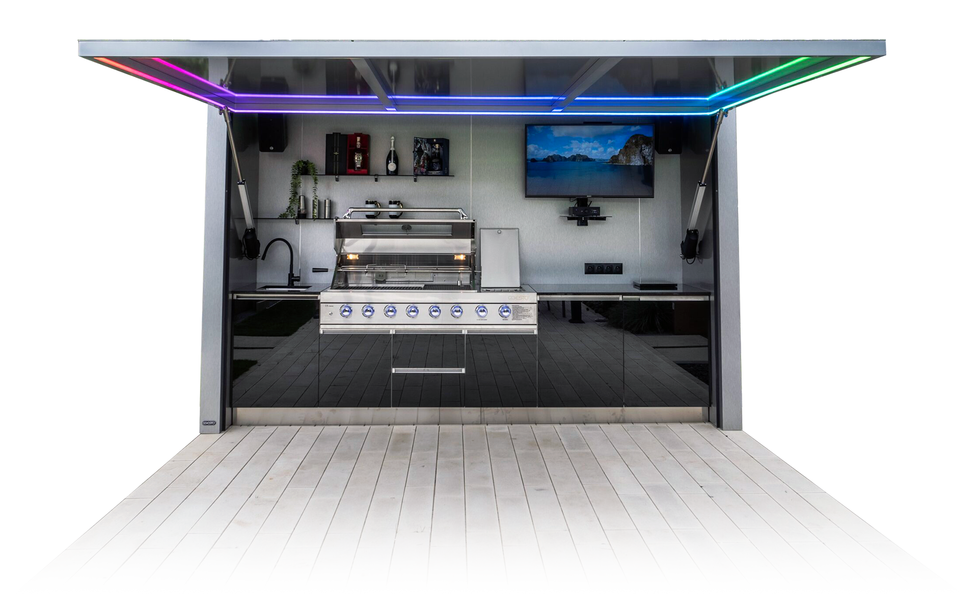 Your Porta outdoor kitchen is always set up and ready to go. Just turn it on and start grilling.
